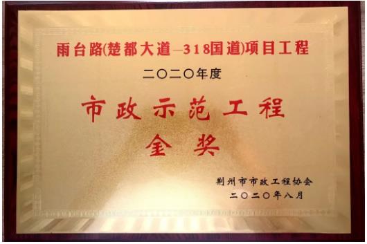 近日,由武漢建工路橋分公司承建的雨臺(tái)路(楚都大道-318國(guó)道)項(xiàng)目、福陽(yáng)路(雞公山路-濱河路)項(xiàng)目,分別獲評(píng)“2020年度荊州市市政示范工程金獎(jiǎng)”。