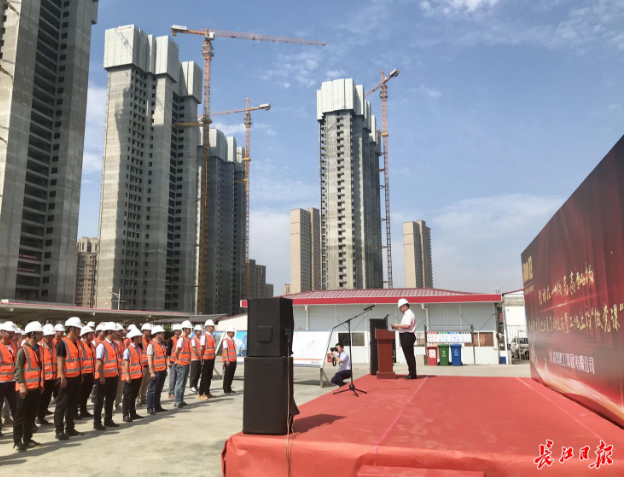 6月8日上午,位于經(jīng)開(kāi)大道旁的車(chē)都?春臺(tái)里項(xiàng)目工地80余名一線建設(shè)者在辦公區(qū)上了一堂“微黨課”。即日起,黨史教育巡回展將在武漢建工集團(tuán)市內(nèi)12個(gè)重點(diǎn)工地巡回展出,持續(xù)至10月。